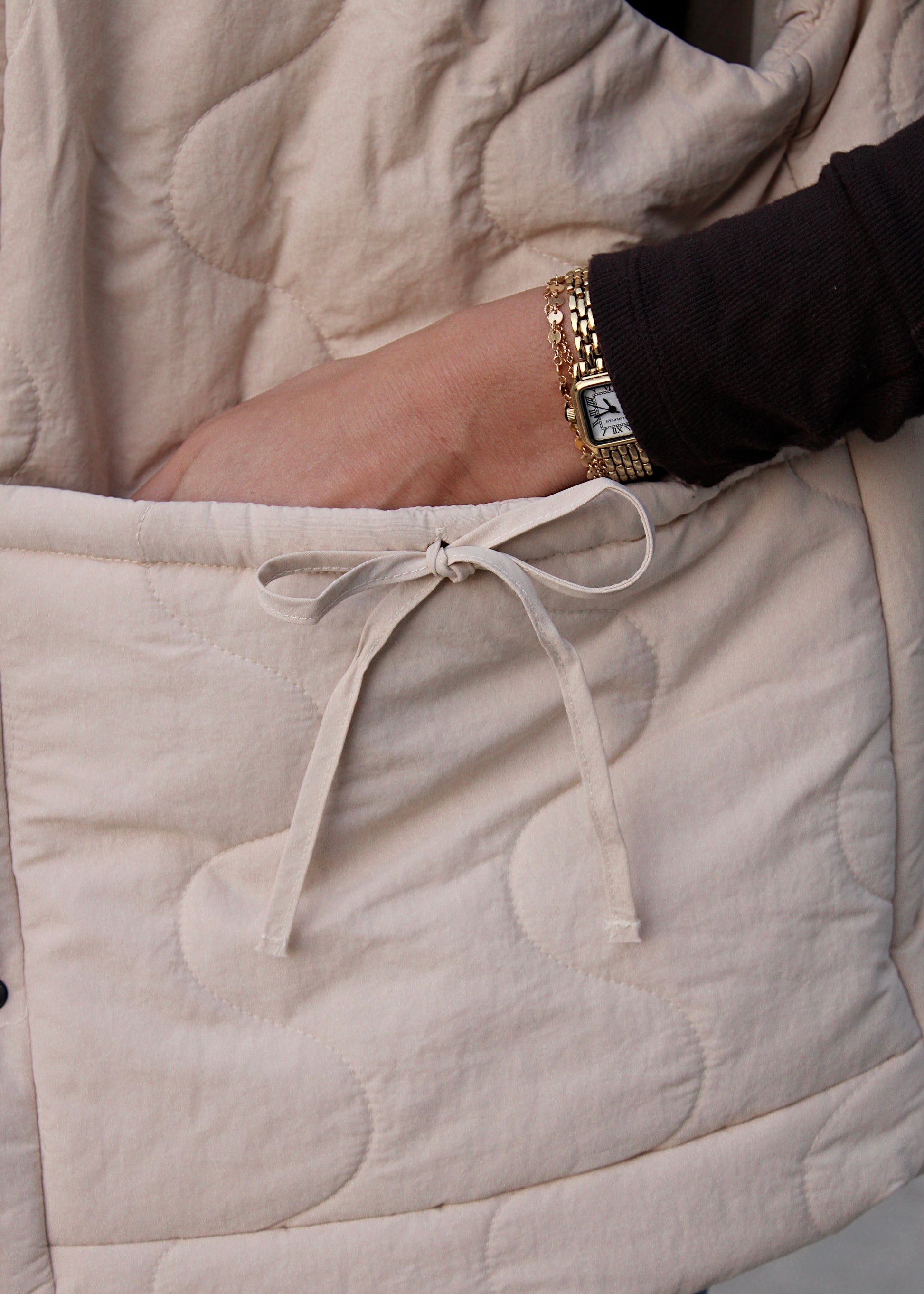 A perfect puffer vest with wave quilting and adjustable drawstring waist. Perfect for layering to stay warm without bulk.